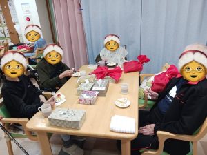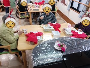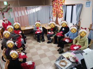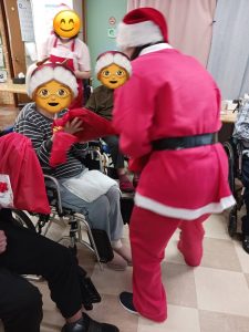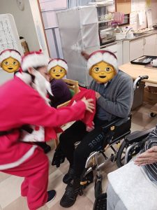 2025.12.17 ちょっぴり早いですが、クリスマス会開催 毎年1ヶ月以上前から今年はどんなことしようとミーティング プレゼントは喜んで頂ける物ひとりひとりのお顔浮かべながら選択 ケーキどうしよう?去年は苺のサンタ乗ってたけど今年はサンタの顔にしよう メインのイベントどうしよう?専門の講師に依頼 盛り上げて盛り上げて下さいました 今年もとてもいいクリスマス会となりました さあて今年のサンタは誰でしょう???